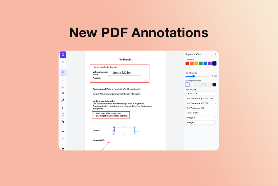 Das klassische Marker-Tool für PDFs darf natürlich nicht fehlen. Markieren Sie wichtige Textstellen in unterschiedlichen Farben und Strichstärken – genau so, wie Sie es vom Textmarker auf Papier gewohnt sind.