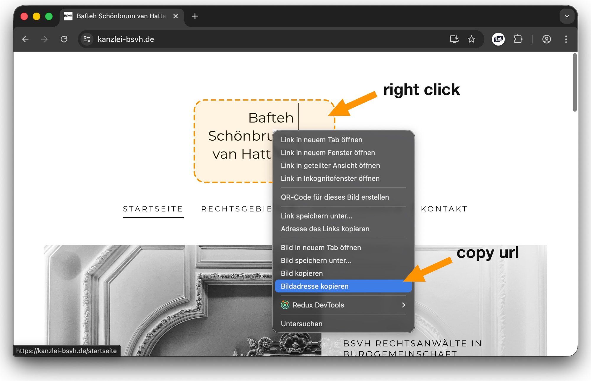 Se non conoscete ancora l'URL diretto del vostro logo, potete determinarla in pochi secondi in qualsiasi browser: